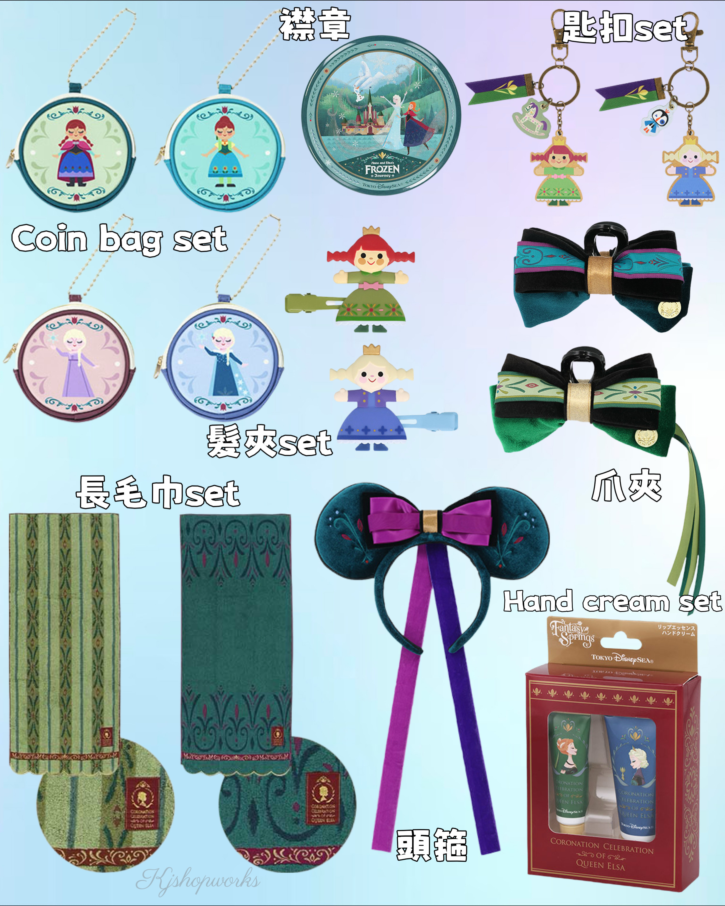 預訂 樂園限定 Frozen 襟章 匙扣 Coin bag 長毛巾 爪夾 頭箍 髮夾 Hand cream