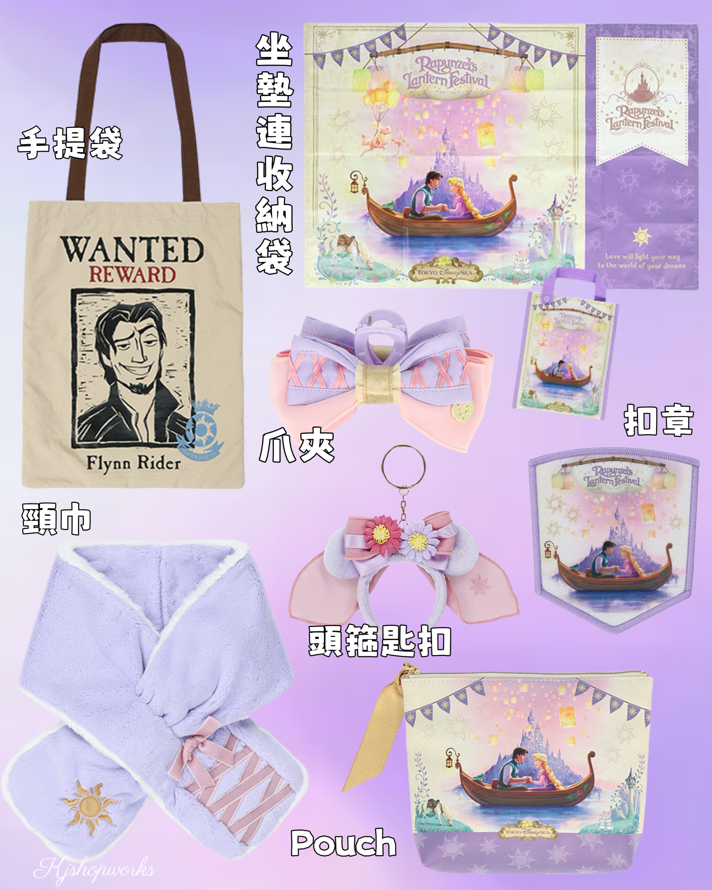 預訂 樂園限定 Rapunzel Lantern Festival 手提袋 坐墊連袋 扣章 爪夾 頭箍匙扣 Pouch 頸巾